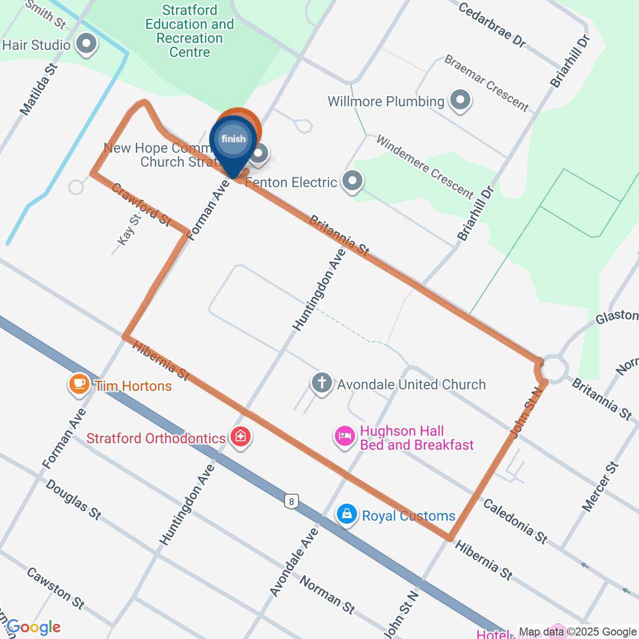 ![]() | Head northwest on Hibernia St | 0.7 km7 minutes |